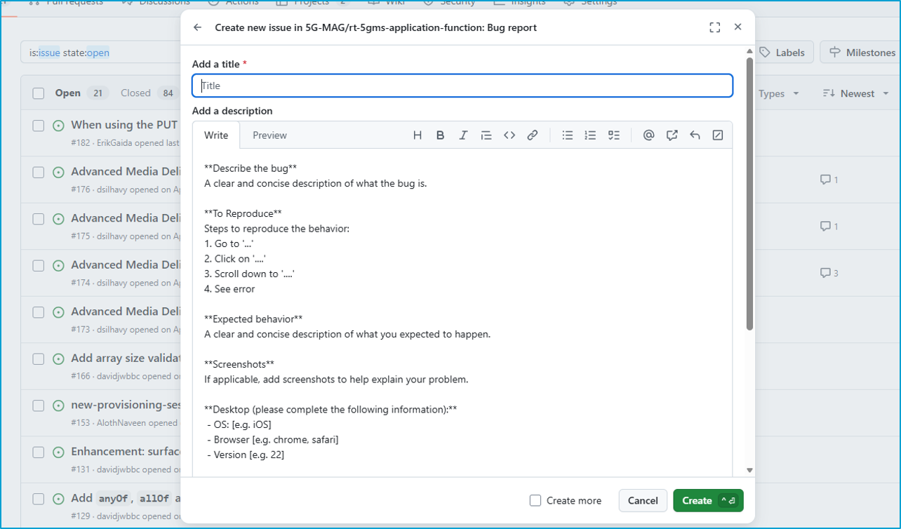 If you wish to contribute code to the projects then you will first need to send us a signed version of the Contributor License Agreement (CLA). Only individuals and/or companies with a signed CLA can contribute code. Please visit https://www.5g-mag.com/license for more details. The 5G-MAG Public License and CLAs can be downloaded from the links below.
