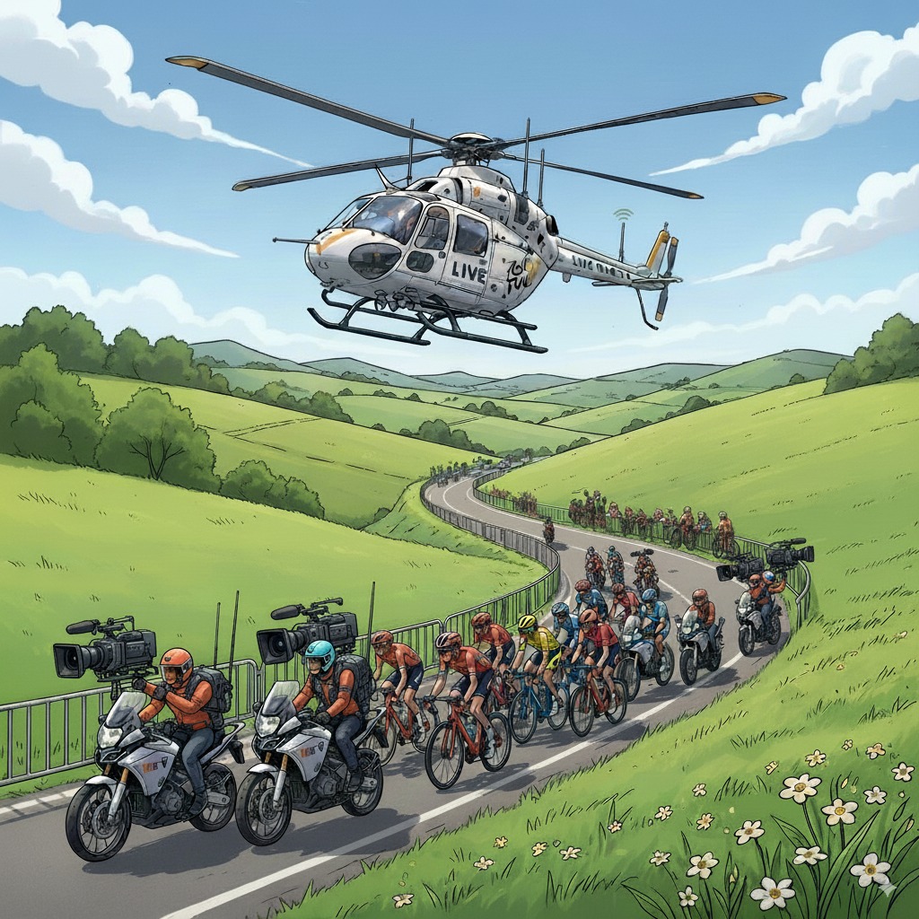 ![]() | High-mobility cameras introduce the unique challenge of seamlessly mixing their footage (generally highly engaging) into a high-quality production that includes wired cameras with reliable connections. This means the wireless setup needs to be as stable as possible, whereas the nature of its constant motion, changing environments, and potential signal obstructions makes that challenging with frequent signal fades or brief drops in connectivity. Despite these issues, the value of the unique camera perspective is prioritized. A camera on a referee provides an on-field view of the action and is critical for live replays and enhancing the narrative of the game. A camera on a motorbike in the Tour de France provides up-close views of the riders that a stationary camera could never capture. |